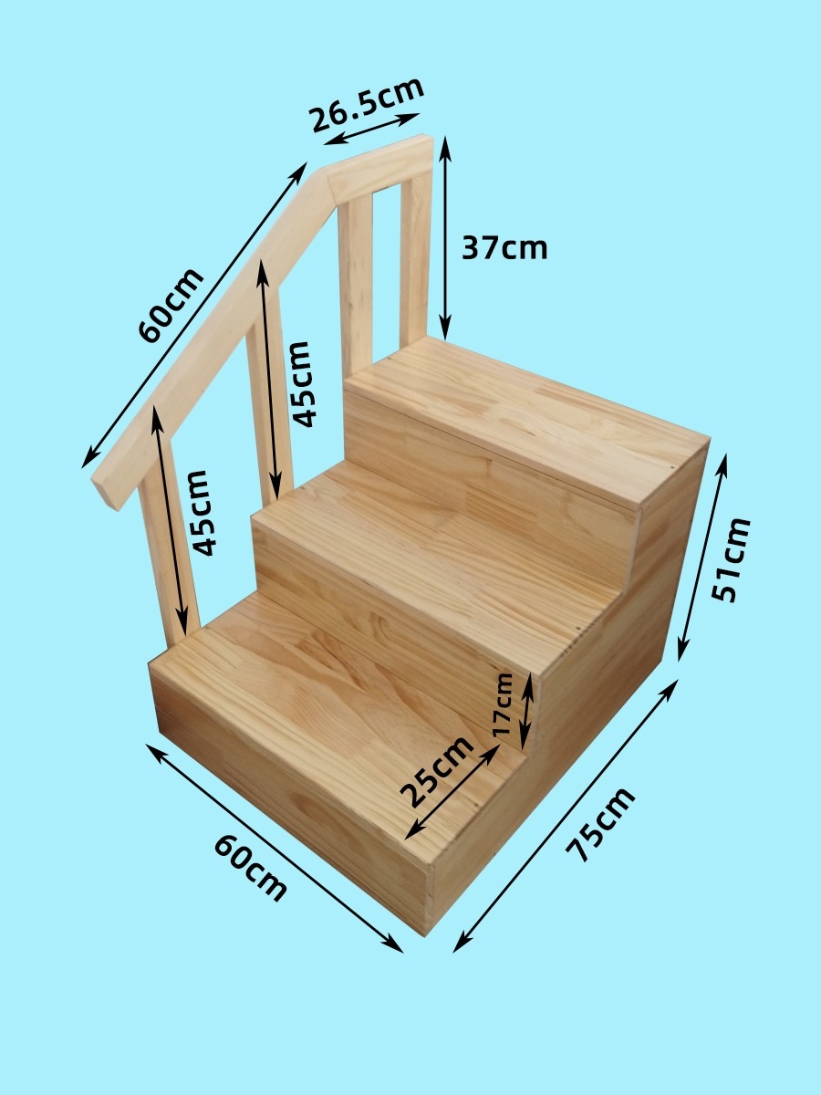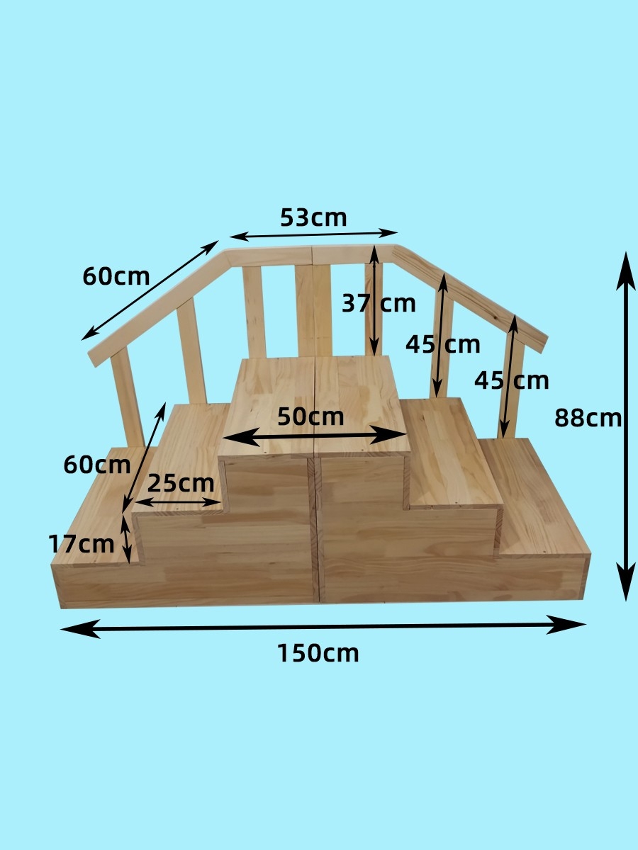 梯長(zhǎng)75厘米,梯寬60厘米(不含扶手),梯高88厘米(含扶手)